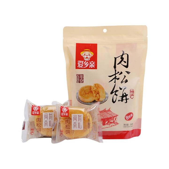 Aixiangqin’s classic Pork Floss Pastry Cakes combine a buttery, layered crust with a light, savory-sweet filling of fluffy pork floss. Conveniently portioned into eight single-serve packs, they are perfect for breakfast on the go, afternoon tea, or sharing with friends. Product Highlights: Savory-Sweet Fusion: Fluffy pork floss filling balanced with a mildly sweet pastry shell. Individually Wrapped: Eight sealed packs keep each cake fresh and portable. Soft & Flaky Texture: Traditional Chinese baking technique yields a tender, multi-layered bite. Ready to Eat: No heating required—enjoy straight from the pouch. Shareable Size: 260 g total weight makes it easy to treat family, coworkers, or guests.