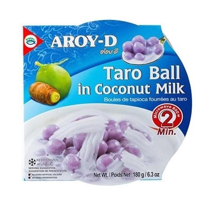 Enjoy the delightful taste of Aroy-D Frozen Taro Balls in Coconut Milk, a traditional dessert packed in a convenient 180g package. These taro balls are immersed in rich and creamy coconut milk, offering a perfect blend of flavors and textures. Simply heat in the microwave for 2 minutes and indulge in this delicious treat. Perfect for a quick dessert or a sweet snack, Aroy-D Taro Balls in Coconut Milk bring a taste of authentic Asian cuisine to your table. Experience the premium quality and delightful taste of Aroy-D Frozen Taro Balls in Coconut Milk.