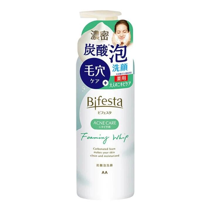 Bifesta Acne Care Foaming Whip Cleanser creates a dense, carbonated mousse that lifts away oil, sunscreen, and impurities while staying gentle on skin. Formulated for acne-prone complexions, the ready-made foam reaches into pores for a fresh, comfortable clean without tightness. Bifesta is a Japanese skincare line from Mandom, known for effective yet gentle cleansers. Product Highlights: Carbonated Micro-Foam: Dense bubbles help dislodge impurities and excess sebum from pores. Acne Care Formula: Designed to help reduce oiliness and the look of breakouts. Gentle Cleanse: Leaves skin clean and comfortable, not stripped. Ready-to-Use Whip: Aerosol pump dispenses soft foam—no lathering needed. Everyday Use: Ideal for oily to combination, acne-prone skin.