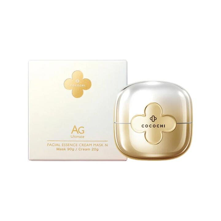 Cocochi AG Ultimate Facial Essence Cream Mask pairs a rich essence mask with a silky cream finish to pamper tired, dull-looking skin. This 110 g treatment set is designed for indulgent night-time care, leaving your complexion feeling soft, supple and comfortably hydrated by morning. Product Highlights: 2-in-1 Treatment: Combines a concentrated facial essence mask (90 g) with a complementary cream (20 g) for complete care. Luxurious Texture: Smooth, cushiony cream mask glides on easily and absorbs without heavy stickiness. Overnight Care: Ideal as a night mask to help restore moisture while you sleep. Japanese Skincare Brand: From Cocochi, known for elegant, sensorial formulas inspired by Japanese beauty rituals. Elegant Design: Premium gold-toned jar makes it a beautiful addition to your vanity or a thoughtful gift. Search terms Search keywords: Cocochi, Cocochi AG Ultimate, facial essence cream mask, cream mask, sleeping mask, Japanese face mask, AG Ultimate mask, COCOCHI AG