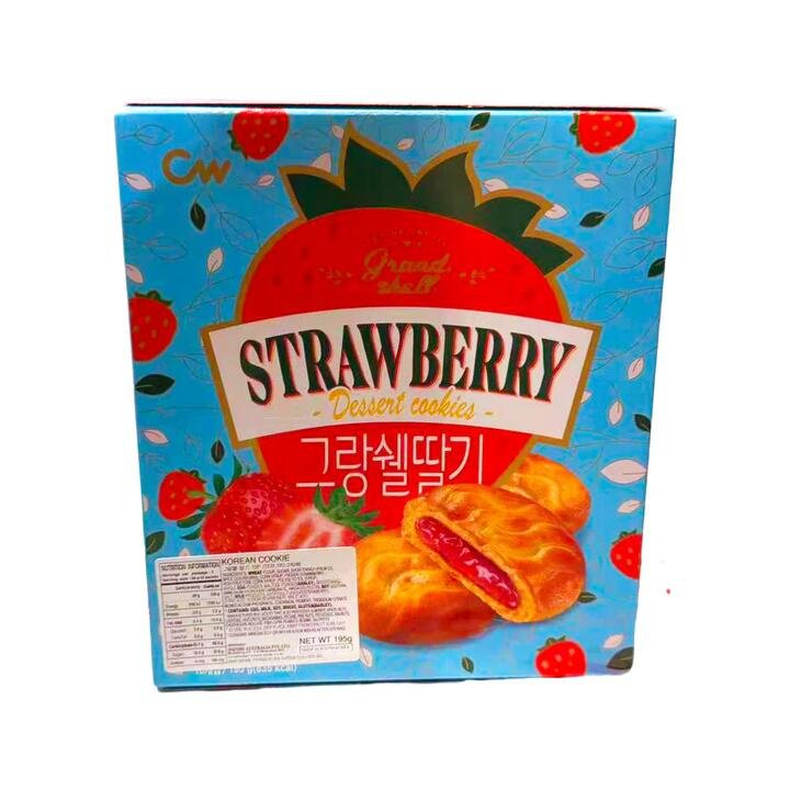 CW Grandshell Strawberry Filled Cookies combine a tender, buttery biscuit shell with a bright, jammy strawberry centre. These Korean dessert cookies are perfect for sharing over coffee, packing into lunchboxes, or enjoying as an anytime sweet treat. Product Highlights: Strawberry Jam Filling: Generous fruit-flavoured centre for a satisfying sweet bite. Soft Biscuit Shell: Light, crumbly texture that pairs beautifully with tea or coffee. Korean Favourite: Popular CW Grandshell series snack, loved for its dessert-like taste. Convenient Box Size: 195 g pack, easy to store and share at home or in the office. Ready to Enjoy: No preparation needed—just open the box and serve. Search terms Search keywords: CW Grandshell, Grandshell strawberry, strawberry cookies, Korean cookies, Korean snacks, filled cookies, 그랑쉘 딸기