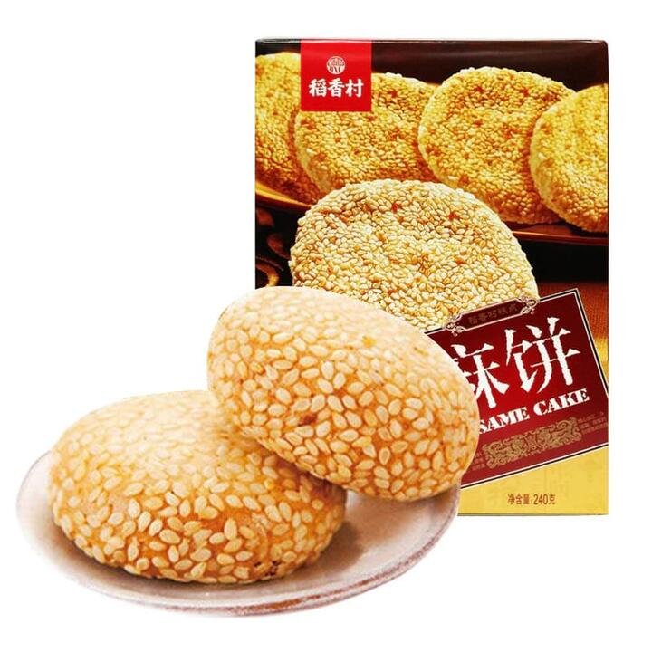 A delicious sesame cake from Daoxiangcun, filled with a rich pine nut and jujube paste. This 240g pack offers a unique taste experience, combining sweet and nutty flavors.