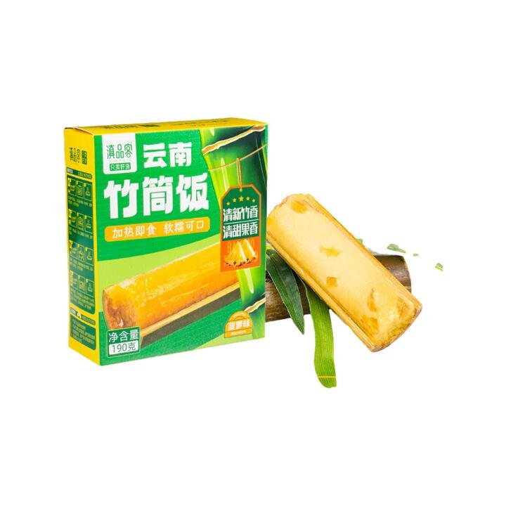 Dianpink Yunnan Bamboo Tube Sticky Rice captures the classic flavour of a local street favourite in a convenient 190 g pack. Fragrant glutinous rice is cooked inside a real bamboo tube, absorbing a gentle bamboo aroma and the refreshing sweetness of pineapple pieces—simply heat and enjoy. Product Highlights: Yunnan Specialty: Traditional bamboo tube rice inspired by classic Yunnan flavours. Pineapple Infusion: Light, fruity pineapple pieces add a refreshing sweetness to the chewy rice. Natural Bamboo Aroma: Steamed in bamboo so every bite carries a subtle, comforting fragrance. Heat & Eat: Ready in minutes—just steam or microwave according to the pack instructions. Perfect Single Serve: 190 g portion, ideal as a light meal, snack, or dessert. Search terms Search keywords: bamboo tube rice, zhutongfan, 竹筒饭, Yunnan bamboo rice, pineapple sticky rice, Dianpink, 滇品客