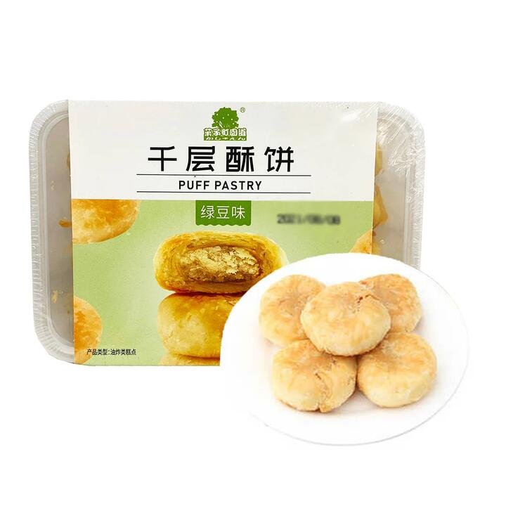 Fruit Town Garden Road Thousand Layer Crisp Biscuits are a delightful snack with a unique green bean flavor. These 250g biscuits are characterized by their light, flaky texture and rich taste.