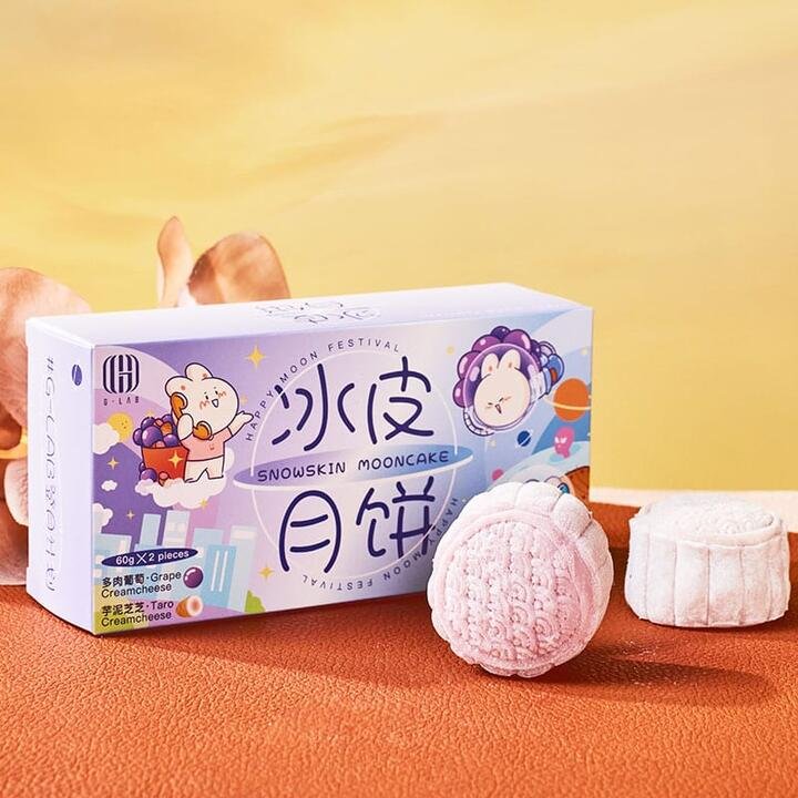 G-lab Frozen Snowskin Mooncake Grape & Taro Creamcheese – 2 Pieces, 120g