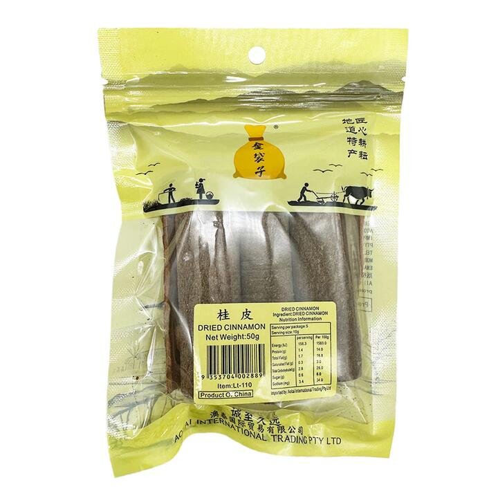 Golden Pouch Brand Cinnamon Bark 50g – High-quality cinnamon bark sourced from Golden Pouch Brand, perfect for adding flavor and aroma to your dishes. 50g pack ensures freshness and convenience for all your culinary needs.