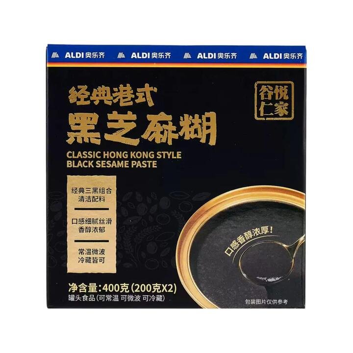 GuYue Renjia presents a Classic Hong Kong–style Black Sesame Paste that’s silky, fragrant, and deeply nutty. This 400 g pack includes two convenient 200 g cups you can enjoy warm or chilled—perfect as a quick dessert or late-night comfort bowl. Limited Import, brought in from ALDI China. Product Highlights: Authentic HK Style: Smooth, rich black sesame dessert with a classic roasted aroma. Three-Black Blend: Features black sesame, black rice, and black beans for layered flavour. Ready to Enjoy: Eat straight from the cup, chill, or microwave briefly. Convenient Portions: 400 g total (2 × 200 g) for easy serving and sharing. Shelf-Stable: Store at room temperature; refrigerate after opening.
