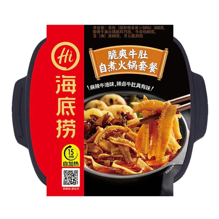 Self-heating mini hot pot with crispy beef tripe flavor for a convenient and delicious meal on-the-go.