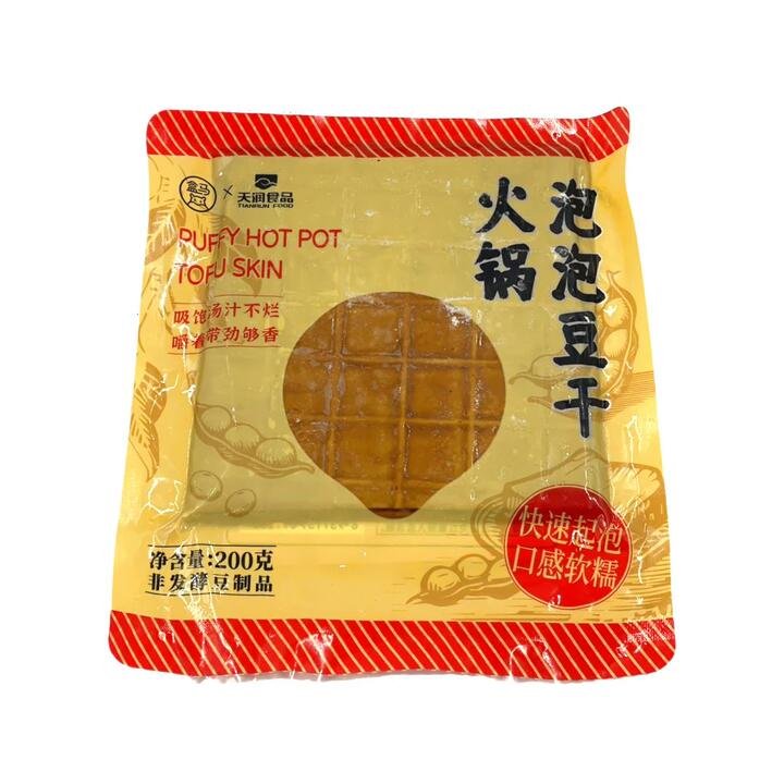 Hema Frozen Puffy Hot Pot Tofu Skin is made for soaking up rich, flavourful broth without falling apart. The airy, sponge-like texture turns every hot pot, stew, or stir-fry into a satisfying, sauce-packed bite. Product Highlights: Hot Pot Ready: Specially made tofu skin that absorbs soup and sauces beautifully. Puffy, Tender Bite: Light, spongy texture stays soft yet springy after simmering. Versatile Use: Ideal for hot pot, braised dishes, noodle soups, or quick stir-fries. Convenient 200g Pack: Perfect size for family hot pot nights or meal prep. Frozen for Freshness: Store in the freezer and cook straight from frozen with no fuss. Search terms Search keywords: puffy tofu skin, hot pot tofu, frozen tofu skin, tofu puff, Hema, 盒马, hotpot ingredients, Chinese tofu skin