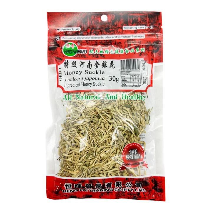 Henghui Premium Henan Honeysuckle 30g – High-quality honeysuckle sourced from Henan province, known for its sweet aroma and health benefits. Perfect for brewing tea or adding to recipes for a floral touch.