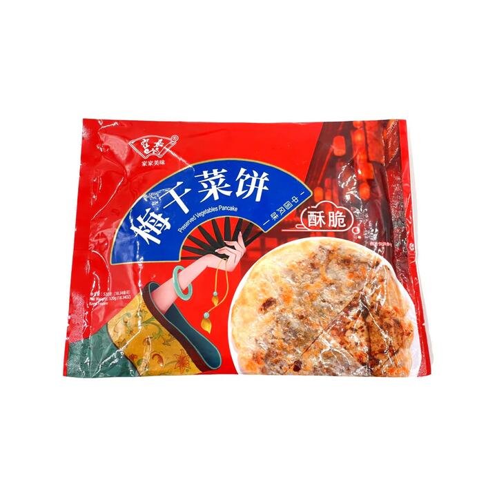 Huojia Frozen Preserved Vegetable Pancakes bring a classic Chinese street-style snack straight to your home. Each pancake is layered with flaky pastry and a savoury filling of meigan cai (preserved vegetables) that crisps up beautifully in the pan. Enjoy them as an easy breakfast, light lunch, or anytime comfort food, ready in just a few minutes from the freezer. Product Highlights: Authentic Flavour: Traditional meigan cai (preserved vegetable) filling for a deep, savoury taste. Convenient Frozen Format: Cook straight from the freezer—no thawing required. Crispy Outside, Soft Inside: Pan-fries to a golden, flaky crust with a tender, fragrant centre. Versatile Serving Ideas: Enjoy on its own, with congee, or as a side to soups and stir-fries. Family-Size Pack: 520g bag provides multiple pancakes, ideal for sharing or quick meals. Search terms Search keywords: Huojia, 梅干菜饼, meigan cai bing, preserved vegetable pancake, Chinese pancake, frozen Chinese pancake, savoury pancake, 霍嘉