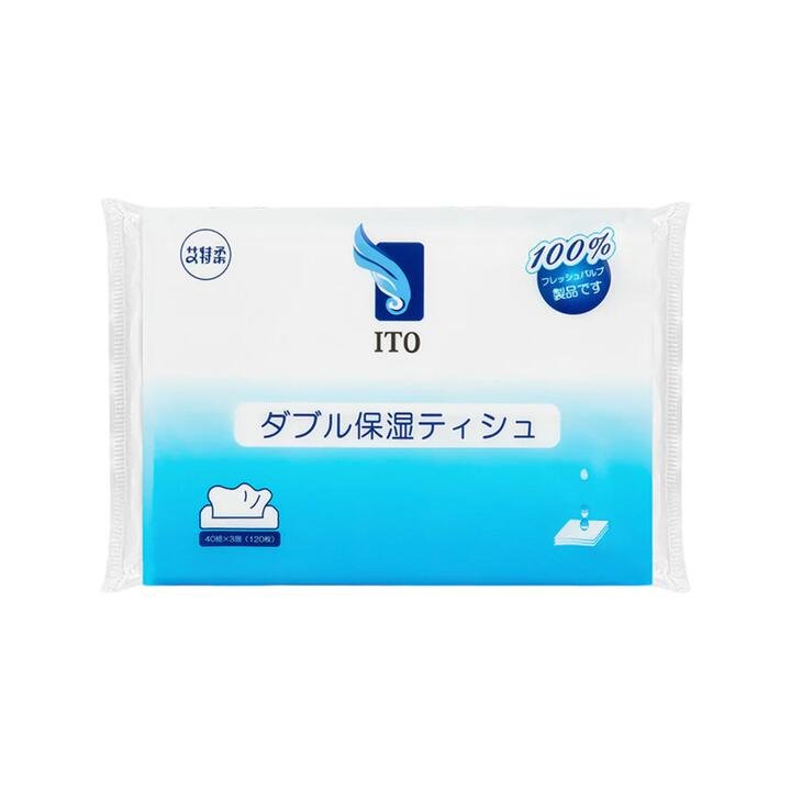 ITO Double Moisturising Cloud-Soft Facial Tissues are designed to be extra gentle on noses and skin, making them ideal during hayfever season or for anyone with dryness and sensitivity. Each cloud-soft sheet feels smooth and cushioned, helping reduce irritation from frequent wiping while remaining strong enough for everyday use. Product Highlights: Ultra-Gentle Texture: Cloud-soft facial tissues created for sensitive skin and delicate noses. Double Moisturising Care: Helps reduce friction and irritation from repeated wiping. Everyday Comfort: Suitable for rhinitis, colds, makeup touch-ups, and daily freshening. Convenient Multi-Pack: Includes 3 packs, each with 40 sheets—easy to keep at home, in the car, or at the office. Compact & Hygienic: Individually wrapped packs keep tissues clean and handy for on-the-go use. Search terms Search keywords: ITO tissues, ITO facial tissue, cloud soft tissues, ダブル保湿ティシュ, Japanese tissues, sensitive skin tissue