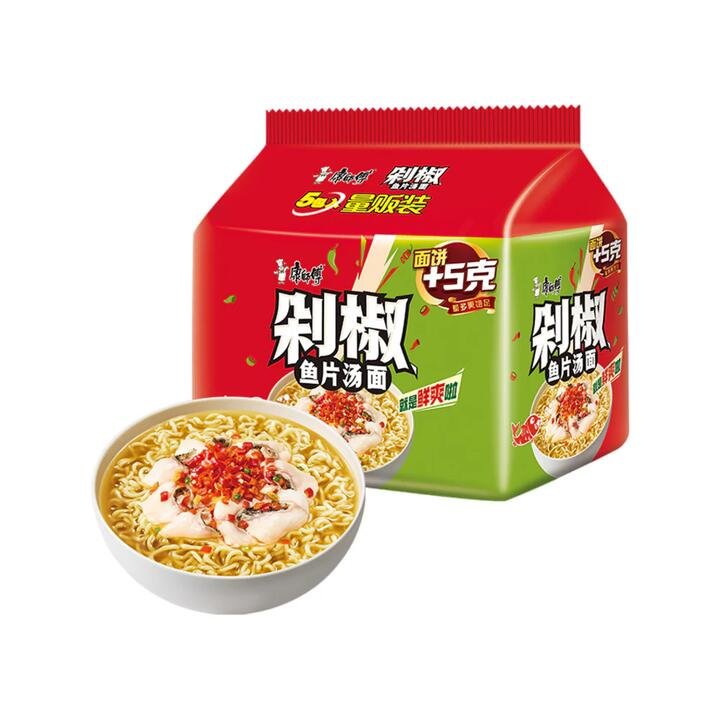 Enjoy the bold and spicy flavors of Master Kong Spicy Fish Fillet Soup Noodles. Each pack contains 110g of delicious noodles, perfect for a quick and satisfying meal. Product Highlights: Spicy Flavor: Infused with a rich and spicy broth. Convenient Pack: Includes 5 individual packs for easy preparation. Quality Ingredients: Made with premium fish fillet and selected spices. Quick and Easy: Ready in minutes for a fast meal option. Authentic Taste: Experience the traditional taste of spicy fish soup noodles.