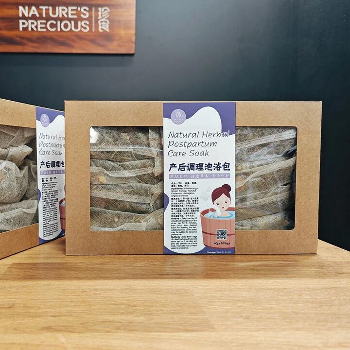 Experience the soothing and restorative benefits of Nature’s Precious Natural Herbal Postpartum Care Soak. Each pack contains 10 bags, each weighing 40g, filled with a blend of natural herbs specifically formulated for postpartum recovery. Ingredients include mugwort, ginger, angelica, astragalus, mulberry, and fangfeng, known for their healing and rejuvenating properties. Simply add a bag to your bath to help alleviate postpartum discomfort, promote relaxation, and support overall well-being. Perfect for new mothers looking for a natural way to care for their bodies after childbirth.