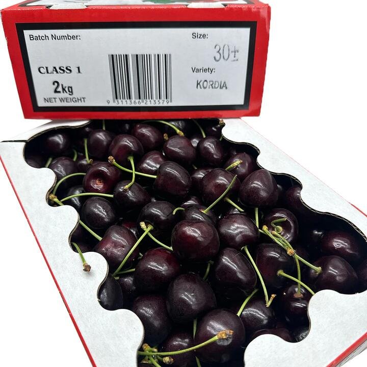 This festive Kordia Cherries Christmas Gift Box features extra-large 30mm+ cherries with deep colour and rich, sweet flavour. Packed in an original presentation carton with around 2kg of fruit, it’s ideal for gifting, sharing at gatherings, or creating an impressive fruit platter. Product Highlights: Extra-Large Fruit: 30mm+ Kordia cherries for a generous bite and premium look. Rich Sweet Taste: Dark, juicy cherries with vibrant flavour, perfect served chilled. Approx. 2kg Per Box: Plenty to share with family, friends, or colleagues. Gift-Ready Carton: Presented in a sturdy, festive-style box for easy gifting. Best Kept Refrigerated: Store in the fridge and rinse just before eating for maximum freshness. Search terms Search keywords: Kordia cherries, cherry gift box, 30mm+ cherries, 2kg cherries, Christmas cherries, dark sweet cherries