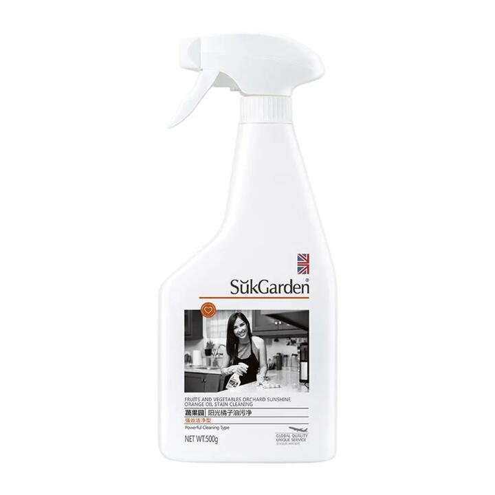 Keep your kitchen spotless with SukGarden Orange Oil Stain Cleaner. This powerful 500g pump bottle is designed to tackle tough grease and grime, leaving surfaces sparkling clean. Product Highlights: Effective Cleaning: Removes stubborn oil stains effortlessly. Orange Oil Formula: Natural and powerful degreasing action. Easy to Use: Convenient pump design for quick application. Versatile Application: Suitable for various kitchen surfaces. Refreshing Scent: Leaves a pleasant citrus aroma.