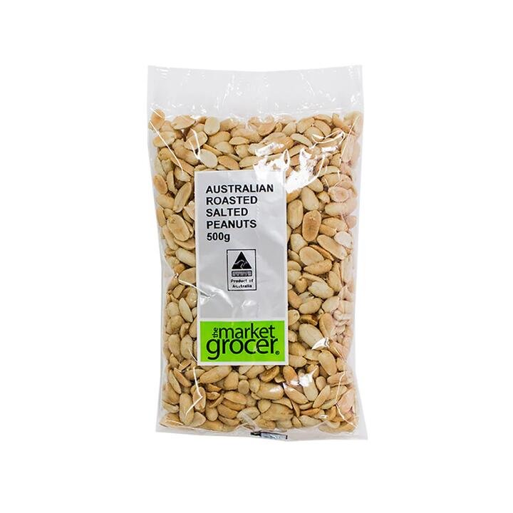 Enjoy the classic taste of The Market Grocer Roasted Salted Peanuts. These delicious peanuts are perfectly roasted and salted, making them an ideal snack for any occasion. Product Highlights: Classic Flavor: Roasted to perfection with a savory saltiness. Quality Ingredients: Made from premium Australian peanuts. Convenient Size: 500g pack, perfect for sharing or snacking. Versatile Snack: Great for parties, picnics, or on-the-go. Fresh and Crunchy: Sealed for freshness and crunchiness.