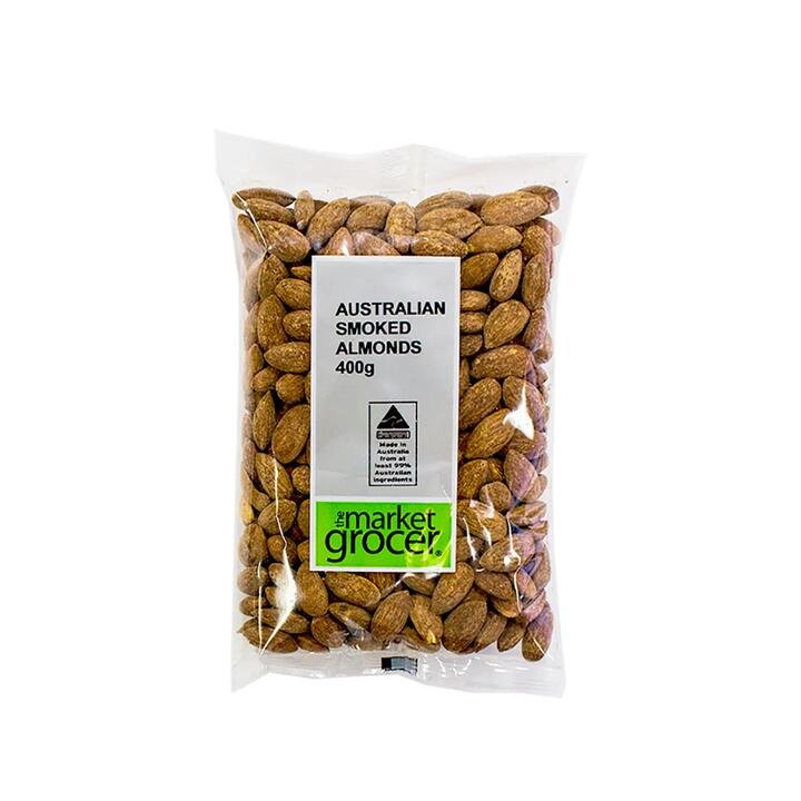 Enjoy the rich and savory taste of The Market Grocer Smoked Almonds. These premium almonds are expertly smoked to deliver a delightful flavor, perfect for snacking or adding to your favorite dishes. Product Highlights: Rich Flavor: Smoked to perfection for a savory taste. Premium Quality: Made from high-quality almonds. Versatile Snack: Great for snacking or culinary use. Convenient Packaging: 400g pack for easy storage and use. Australian Made: Proudly made in Australia with local ingredients.