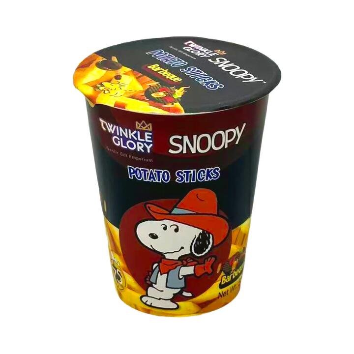 Twinkle Glory Snoopy Barbecue Potato Sticks pack crunchy, savoury potato snacks into a fun, portable cup. Light and crispy with a smoky barbecue flavour, they’re perfect for school bags, office drawers, or anytime snacking. Product Highlights: Fun Snoopy Design: Licensed Snoopy artwork makes this an eye-catching treat for kids and collectors. Crispy Potato Sticks: Thin-cut sticks deliver a satisfying crunch in every bite. Barbecue Flavour: Seasoned with a smoky, savoury barbecue taste. On-the-Go Cup: Resealable-style cup is easy to share, store, and enjoy anywhere. Snack-Size Pack: 50g portion ideal for single serves or lunchboxes. Search terms Search keywords: Snoopy potato sticks, Twinkle Glory, barbecue potato snack, potato sticks cup, 史努比 薯条, BBQ chips