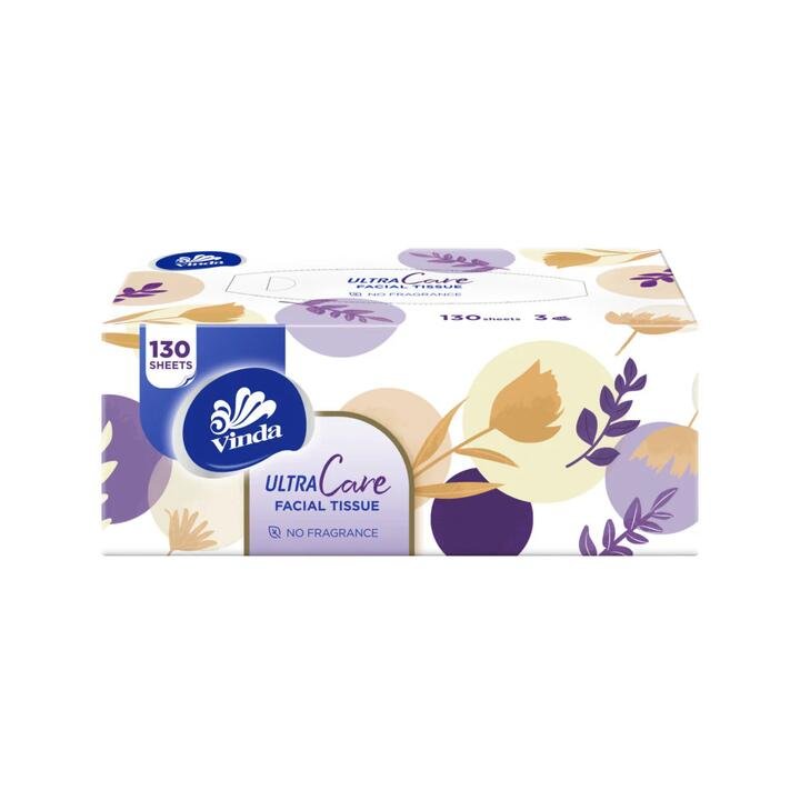 Vinda Ultra Care Facial Tissue delivers soft yet dependable everyday care. Each fragrance‑free, 3‑ply sheet is gentle on skin while staying strong for clean, comfortable use. The value pack includes 8 boxed tissues, each with 130 sheets—ideal for home, office, or the car. Product Highlights: 3‑Ply Comfort & Strength: Soft feel with durable layers for everyday use. Fragrance‑Free: Gentle for sensitive skin and family‑friendly. Value Pack: 130 sheets per box, 8 boxes total. Neat & Practical: Boxed format suits most tissue holders and desks. Ultra Care Range: Quality tissues from Vinda’s trusted line.