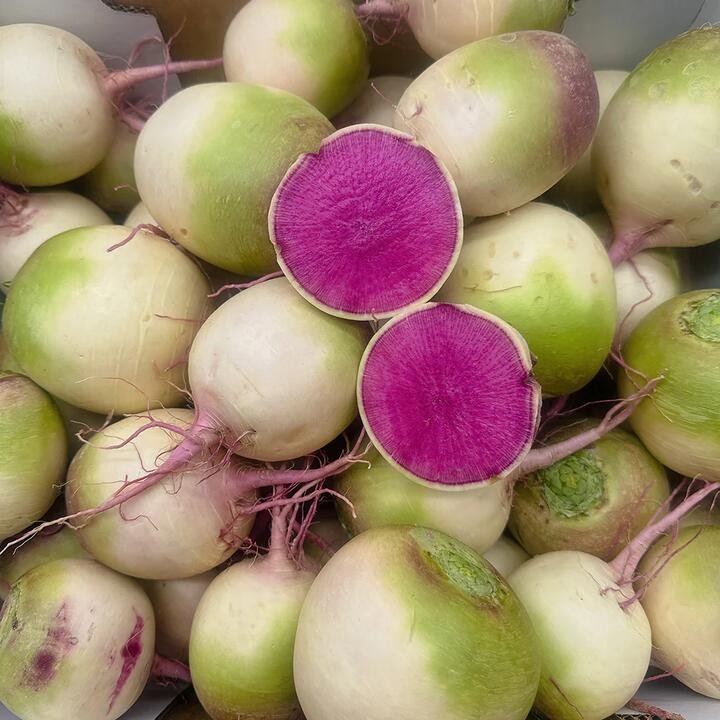 Discover the vibrant and crisp Watermelon Radish, known for its striking pink interior and mild, slightly sweet flavor. Weighing approximately 1.4-1.6kg, this unique root vegetable adds color and nutrition to your meals. Product Highlights: Eye-Catching Appearance: Green exterior contrasting with a bright pink center. Crisp Texture: Firm and crunchy bite perfect for salads and snacks. Mildly Sweet Flavor: Subtle sweetness with peppery undertones. Rich in Nutrients: High in vitamin C and antioxidants. Versatile Use: Great for pickling, roasting, or as a colorful garnish.