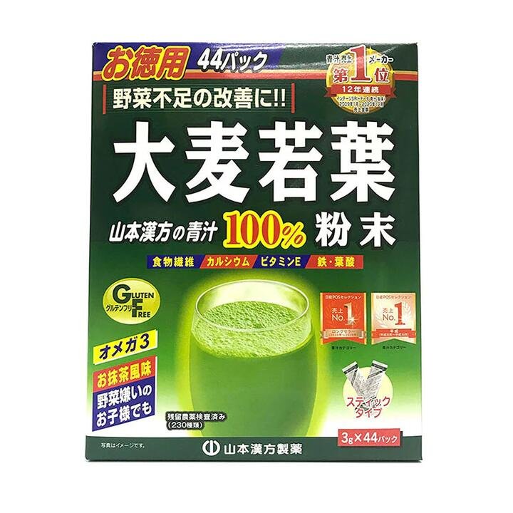 Experience the health benefits of Yamamoto Kanpo Barley Grass Powder, packed in convenient 3g sachets, totaling 132g. This 100% pure barley grass powder is rich in dietary fiber, calcium, vitamin E, iron, and folic acid, making it a nutritious addition to your daily diet. Gluten-free and easy to mix into water, juice, or smoothies, it provides a natural boost of vitamins and minerals. Perfect for those looking to improve their vegetable intake, this barley grass powder is suitable for both adults and children. Enjoy the versatility of this superfood by incorporating it into various recipes, from beverages to desserts.