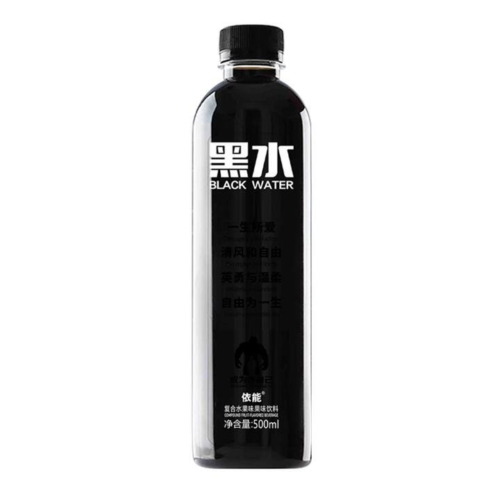 A 500ml Yineng Black Water Drink infused with a refreshing mix of fruit flavors for a unique hydration experience.