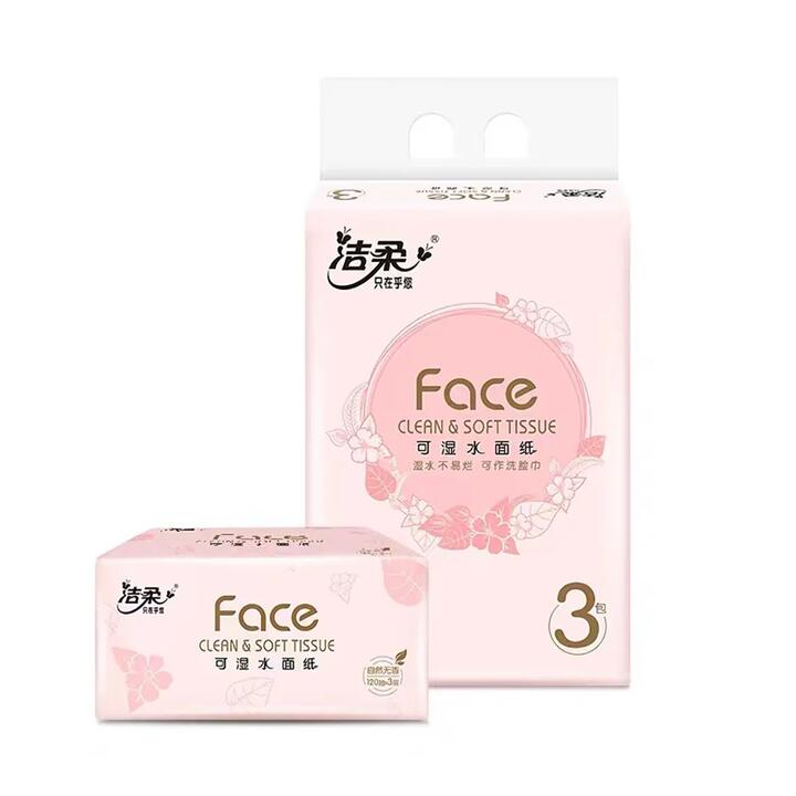 Ultra-soft, unscented facial tissues designed for sensitive skin, featuring 120 wettable sheets per pack with a total of 3 packs included for gentle and effective cleansing.
