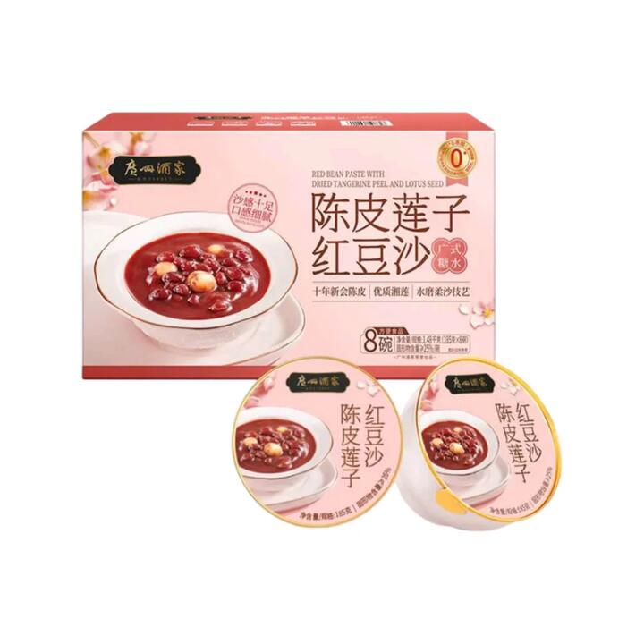 Enjoy a classic Cantonese tong sui from Guangzhou Restaurant—a renowned heritage brand in China—featuring silky red bean soup delicately scented with aged tangerine peel (chenpi) and studded with tender lotus seeds. This pantry-friendly box includes 8 individually sealed bowls; simply heat and serve for a comforting dessert anytime. Product Highlights: Authentic Canton-Style: Smooth red bean base balanced with aromatic aged tangerine peel and lotus seeds. Heat & Enjoy: Microwave or warm in hot water; delicious warm or at room temperature. Convenient Portions: 8 x 185 g single-serve bowls (total 1.48 kg) for easy sharing or mindful treats. Pantry Ready: Shelf-stable packaging ideal for home, office, or gifting. From a Trusted Name: Guangzhou Restaurant is celebrated nationwide for its traditional Cantonese desserts and pastries.