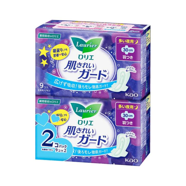 Sleep easy with Kao Laurier’s cotton-soft night pads designed for heavy flow. The quick-absorb core and 30 cm length with wings provide secure overnight coverage while keeping the surface comfortably dry. From Japanese brand Laurier by Kao, known for skin-friendly protection. Product Highlights: Overnight Coverage: 30 cm length with wings for a secure fit through the night. Quick-Absorb Core: Locks in fluid fast to keep the surface dry and comfortable. Cottony Soft Top Sheet: Gentle, breathable feel to help reduce stuffiness. Leak-Guard Design: Wide back and channels help prevent back and side leaks—even when you roll over. Twin Pack Value: 18 pads per pack, 2 packs (36 total), individually wrapped.