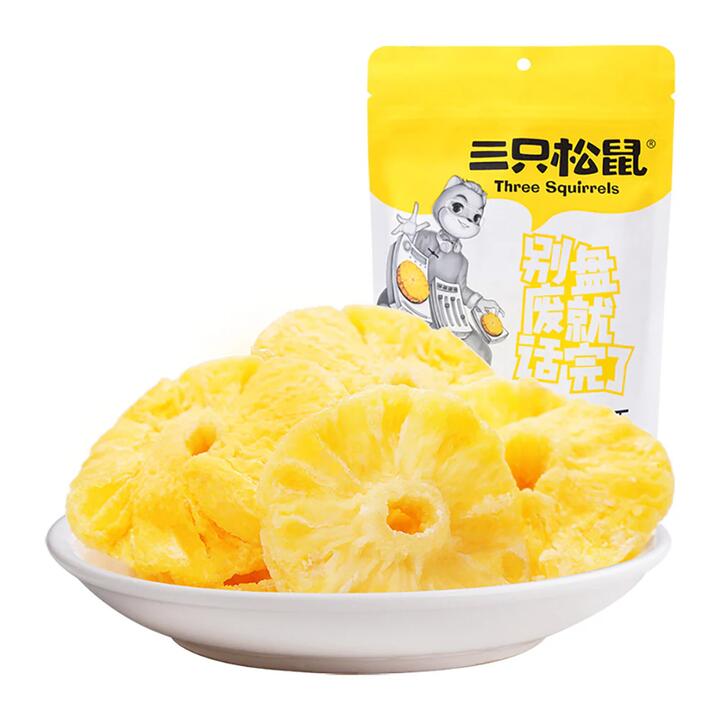 Three Squirrels Dried Pineapple Snack 106g is a delicious and healthy snack made from high-quality, sun-dried pineapples. It’s perfect for on-the-go snacking, offering a sweet and tangy flavor with every bite.